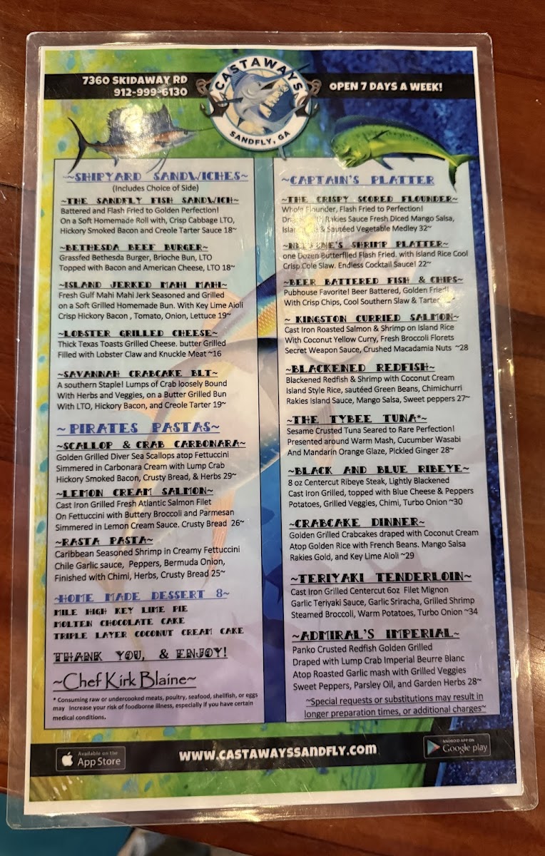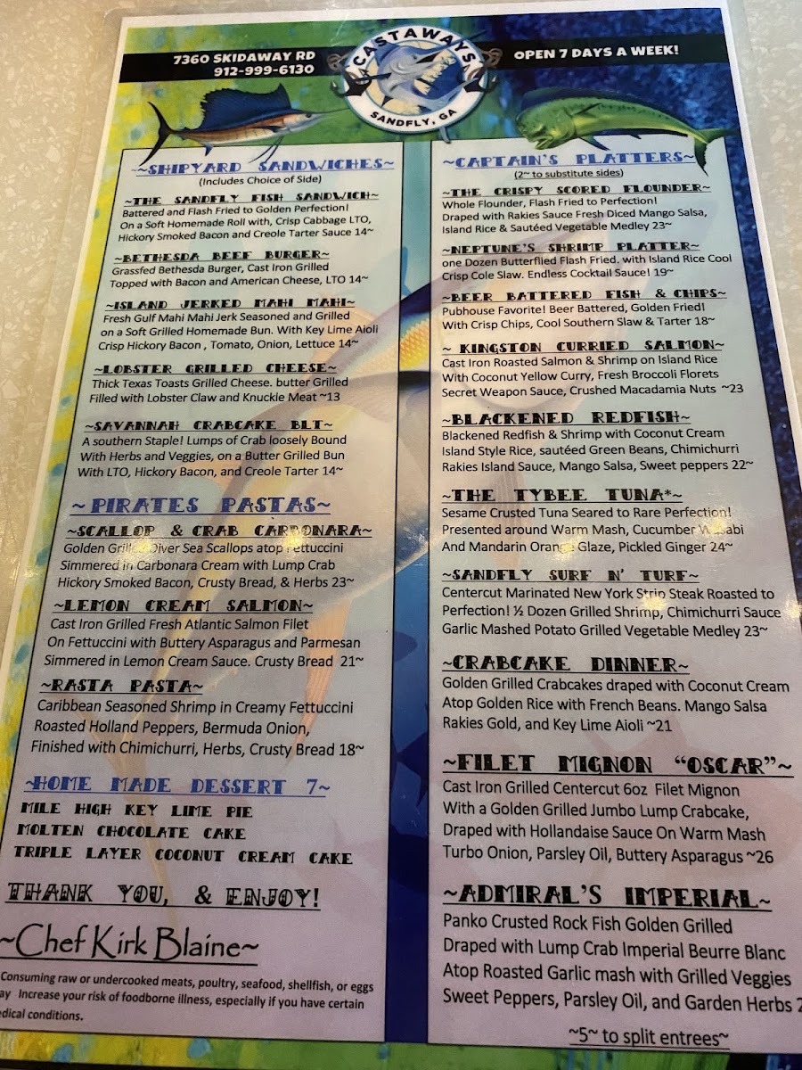 Happy hour enthusiasts will enjoy daily specials from 4-7 PM, making it the perfect spot to unwind with non-alcoholic treats like the delightful grapefruit spritzer. Despite the cozy seating arrangement, diners appreciate the attentive service, exemplified by staff like James and Cole, who ensure every need is met. Castaways truly transforms every meal into a memorable occasion, promising a return visit to savor their culinary offerings.